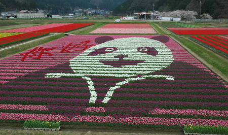 チューリップを並べてパンダの絵に