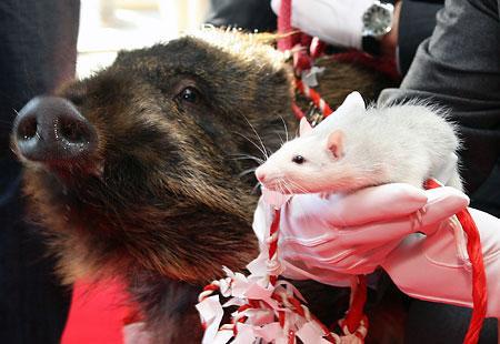 しかし雑食の猪の真横にネズミ・・大丈夫なんかそっちの方が心配